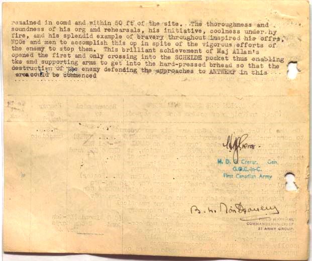 Using the improvised floating bridge built earlier by the 8th Field Squadron, 120-foot Class 40 Bailey Bridges were put across both the Leopold and Dérivation Canals the following day by the 8th and 9th Field Squadrons with assistance for the 31st Field Company. Major M. H. C. W. Allan of the 8th Field Squadron had done the reconnaissance for both bridges and remained on the forward site until both bridges were opened to traffic was awarded the Distinguished Service Order. Almost as soon as the bridges opened, the two squadrons packed up and re-deployed east of the 2nd Division area to support the 4th Division’s move to the east of Antwerp towards the Beveland Peninsula.