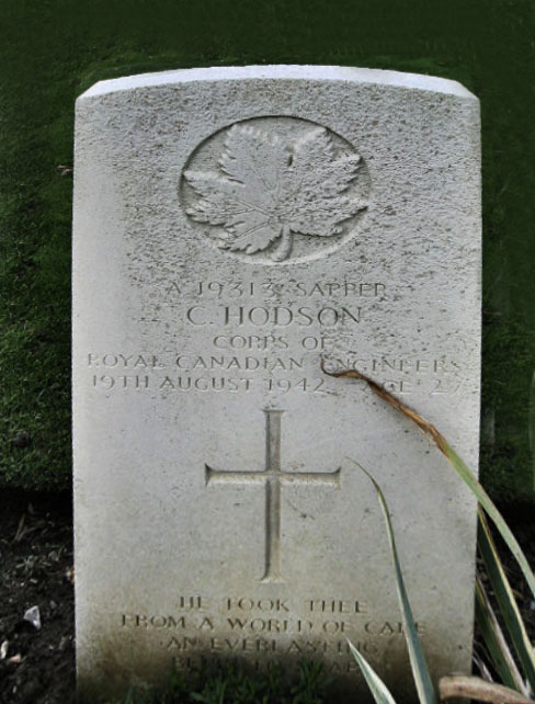Headstone for Spr Cyril Hodson in Dieppe Canadian War Cemetery (Hautot-sur-mer) ; Seine-Maritime, France