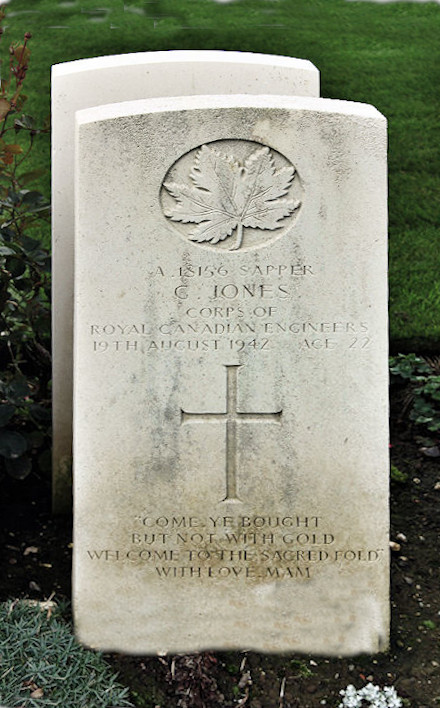 Spr Glyn Jones Headstone, Canadian War Cemetery, Dieppe
