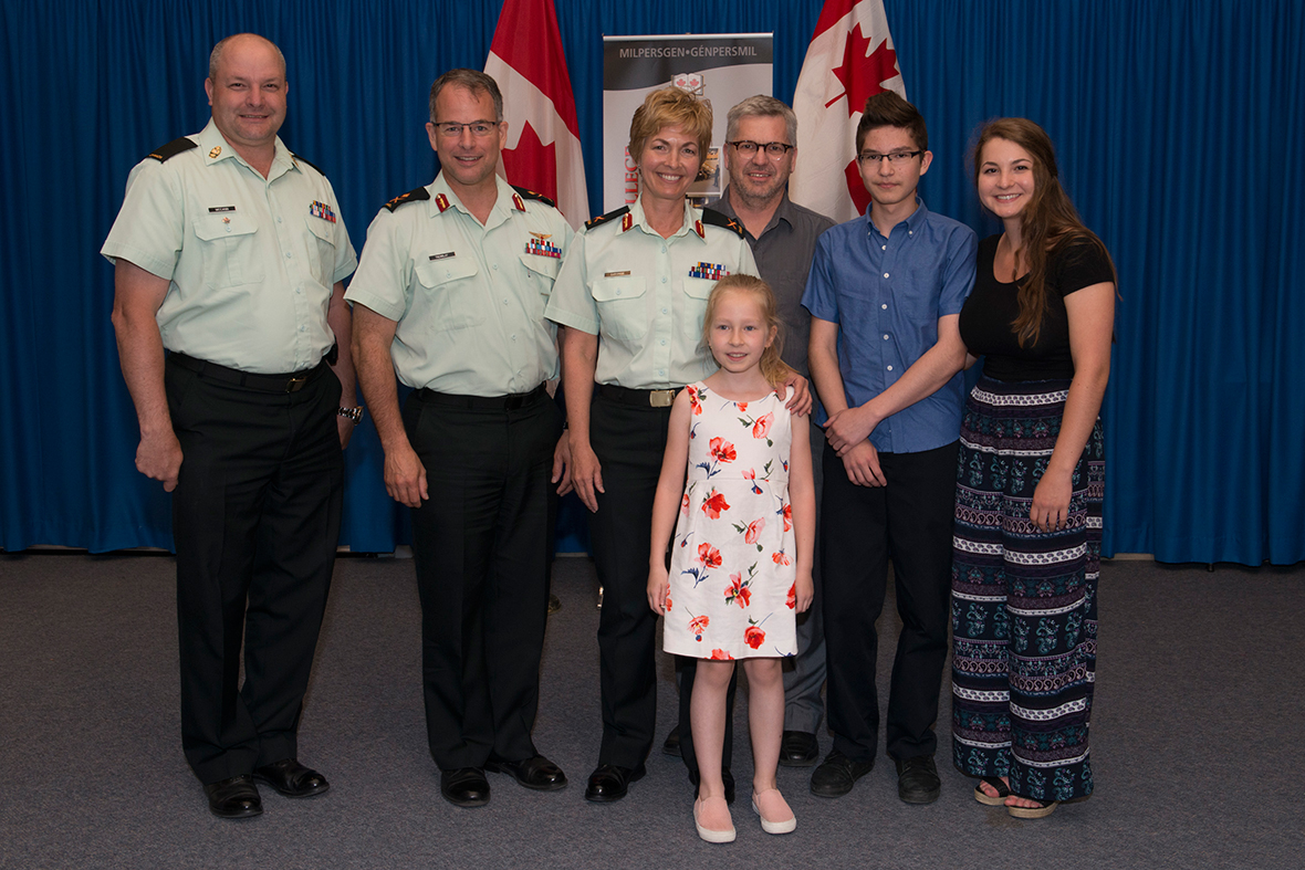 Brigadier-General Jennie Carignan became the highest-ranked woman in the Combat Arms yesterday, June 15, in a ceremony presided over by the Commander of the Canadian Defence Academy, Major-General Eric Tremblay.