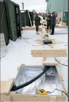 Prior to deployment, many preparations had to be made to ensure success in building the camp. First, we did site reconnaissances. Then, we computer-designed the camp using satellite images of the chosen site. Based on the site’s characteristics and measurements, electricians and electrical generating system techs prepared electrical equipment (electrical panels, wiring, connectors, and so on), so that the camp’s power supply could be quickly installed upon deployment. The use of showers and toilets (MECCs for ablutions) required thorough preparation by plumbers. Fairly complex plumbing is involved in installing four MECCs for ablutions. There is no time to waste in installing them, especially in cold weather.