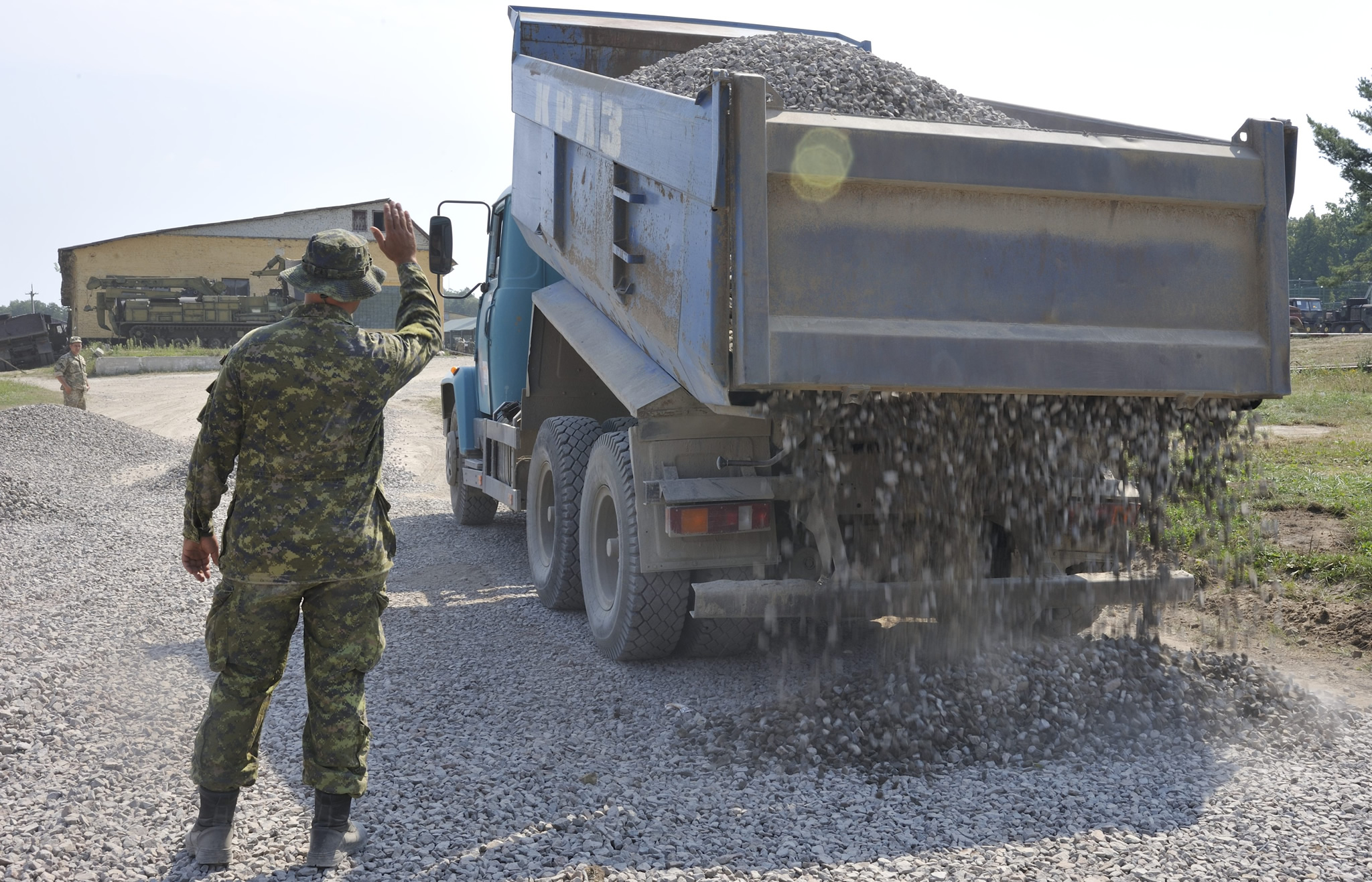 Construction engineers rarely receive recognition for their work, but here in Ukraine, they worked and worked hard. With temperatures frequently reaching into the mid 30’s with high humidity these soldiers deployed on the Op UNIFIER Theatre Activation Team (TAT) have erected a dining hall, a Tactical Operations Centre, a supply warehouse, an orderly room and vehicle maintenance bays to house the roughly 40 vehicles to be used by Joint Task Force Ukraine (JTF-Ukraine) during the training mission. In addition, the Canadian construction engineers worked hand in hand with Ukrainian soldiers in order to renovate two separate living quarters that involved upgrading the living spaces, electrical wiring, and washroom facilities in both buildings.