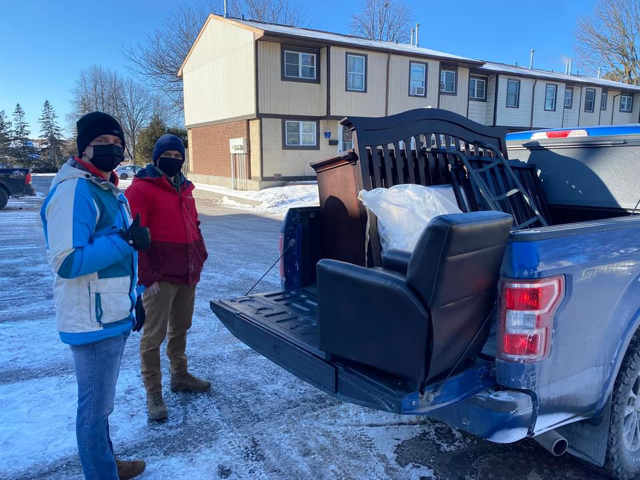 Saturday was an incredible community effort to pull in everything they needed for their home! After highly efficient efforts to find donations by Heather RH, Bride Farrell, Scott Stevenson (and so many more) vehicle after vehicle arrived dropping furniture, clothes, toys, books and more (I missed taking pictures of the first few loads). Others sent money and gift cards! Heather, Bride, Nora Lake and Peter Lake worked tirelessly setting up the home while Mitch de Savoye and Stacey hung curtains. Scott, France Hebert and their crew collected all the extra furniture and delivered it to From House to Home: Furnishing Homes for Refugees where Marc Percheron was waiting to help offload. Kristen Rudderham von Finckenstein and Konrad came to the rescue when I misfired a delivery! So many people contributed that I know I will miss people if I try to name everyone (especially as many were strangers before yesterday) but please know how much your help was appreciated! Lots of Combat Engineers in the mix and even more from the broader military family.