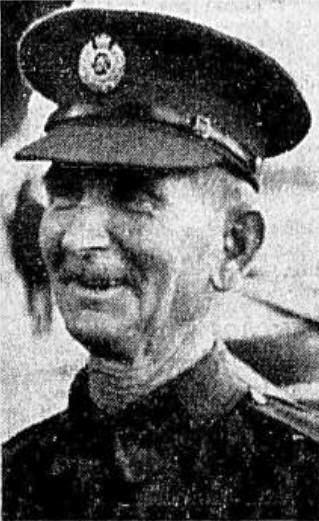 "What service had he seen before this war?" He was almost disdainful. He served four years in the Great War and was wounded three times, and before that — here a calloused finger waved under the reporter's nose — before that he served from 1890 to 1902 in the South African War. Stepping back to see the impression that announcement made, he smiled grimly. Then the finger came into play again. "And I have two sons in the army, one son in the air force, and a grandson in the army," he added triumphantly.