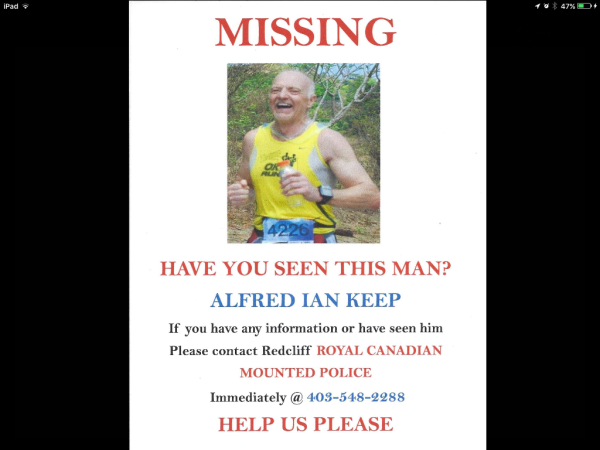 Alfred Ian Keep, an ex-Combat Engineer is missing. Please give this item maximum exposure and hope for his safe return.