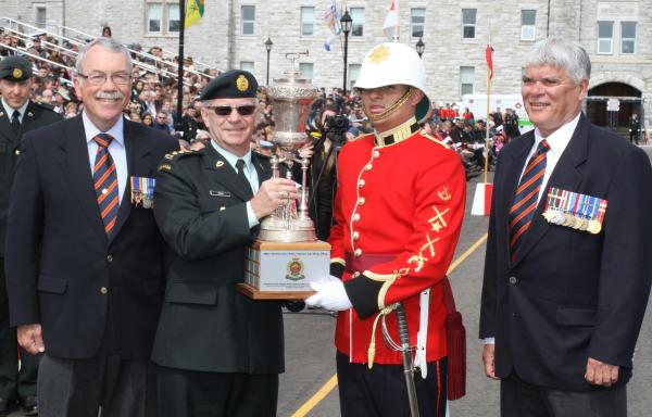 The Major General John Arthur Stewart Trophy for 2015 was awarded to 26305 OCdt Daniel Filipe Cruz (Construction Engineer) seen in the photo receiving the trophy from CME Col Comdt Steve Irwin.
