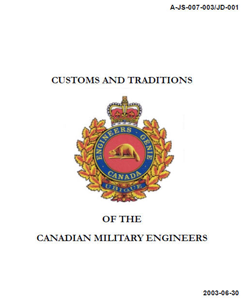 New recruits should treat this manual as mandatory reading to gain a better understanding of the Canadian Military Engineer Branch. All leaders within the Branch should read this manual and keep a copy at hand to ensure that our customs and traditions are properly adhered to on all occasions.