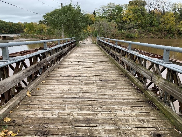 Unfortunately, this replacement bridge was damaged beyond repair by a transport truck in 1964. The Royal Canadian Engineers built a 'temporary’ Bailey bridge that same year using DND materials. Although it was intended to be temporary, the Bailey bridge was eventually bought by the city and remained open for 45 years. The bridge was closed to vehicular traffic in 2006 and to pedestrians in 2009.