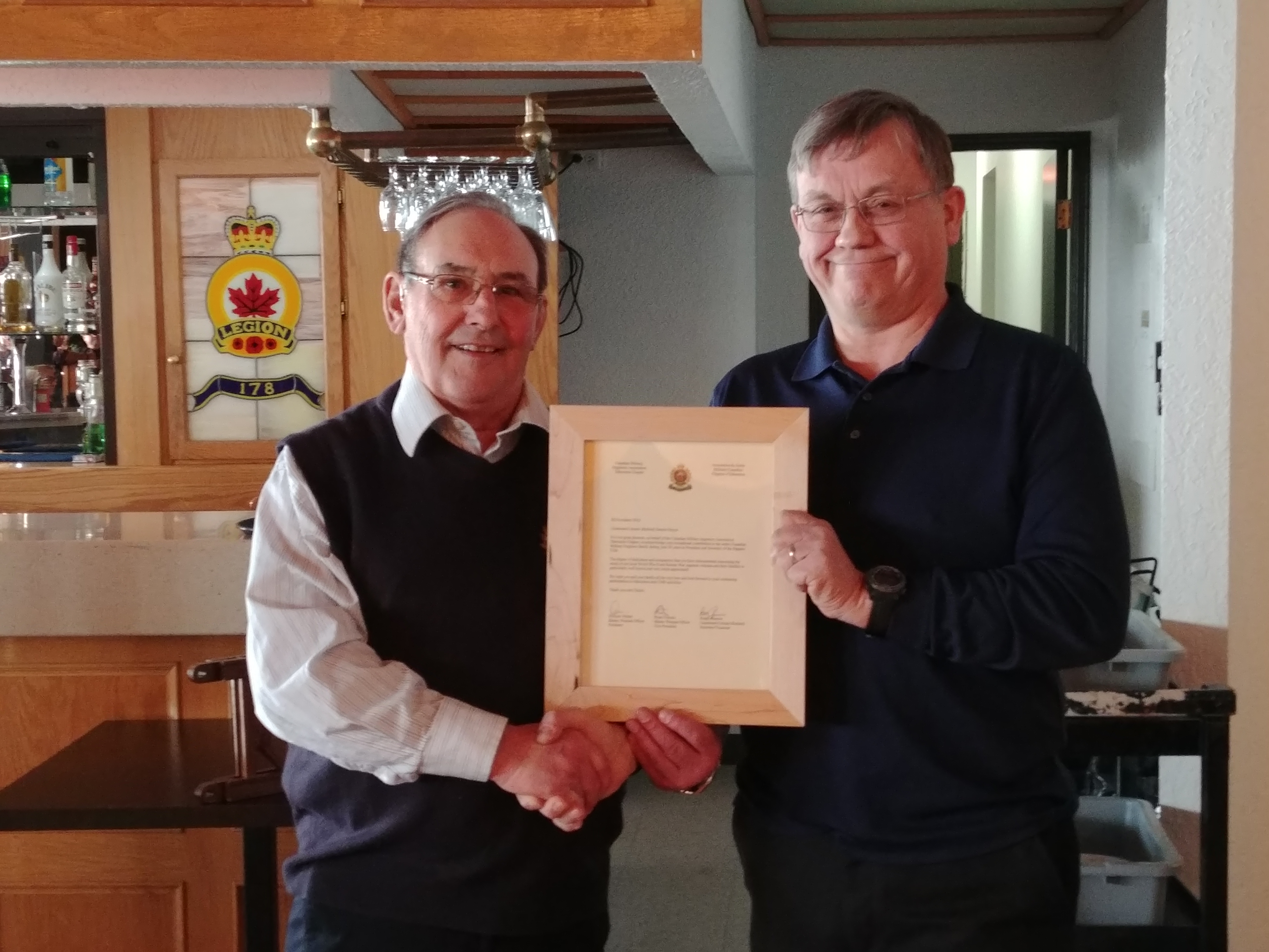 Today marked the final day for Dennis Dwyer as the President of the Edmonton Sapper's Club.  Dennis has been involved with the club for several decades, serving on the executive and has been President for about 14 years.  Another milestone was marked today. The Edmonton Chapter of the CMEA and the Sappers' Club have officially amalgamated. The Objectives established by the original members when they founded the club in 1945 were: the perpetuation of the memory of the RCE;; the demonstration of concern for the well being of all sappers, their comrades and their families; a sharing of memories; and the manifestation of the pride of being an engineer. These objectives meld very well with the CMEA and the transition will be a smooth one.