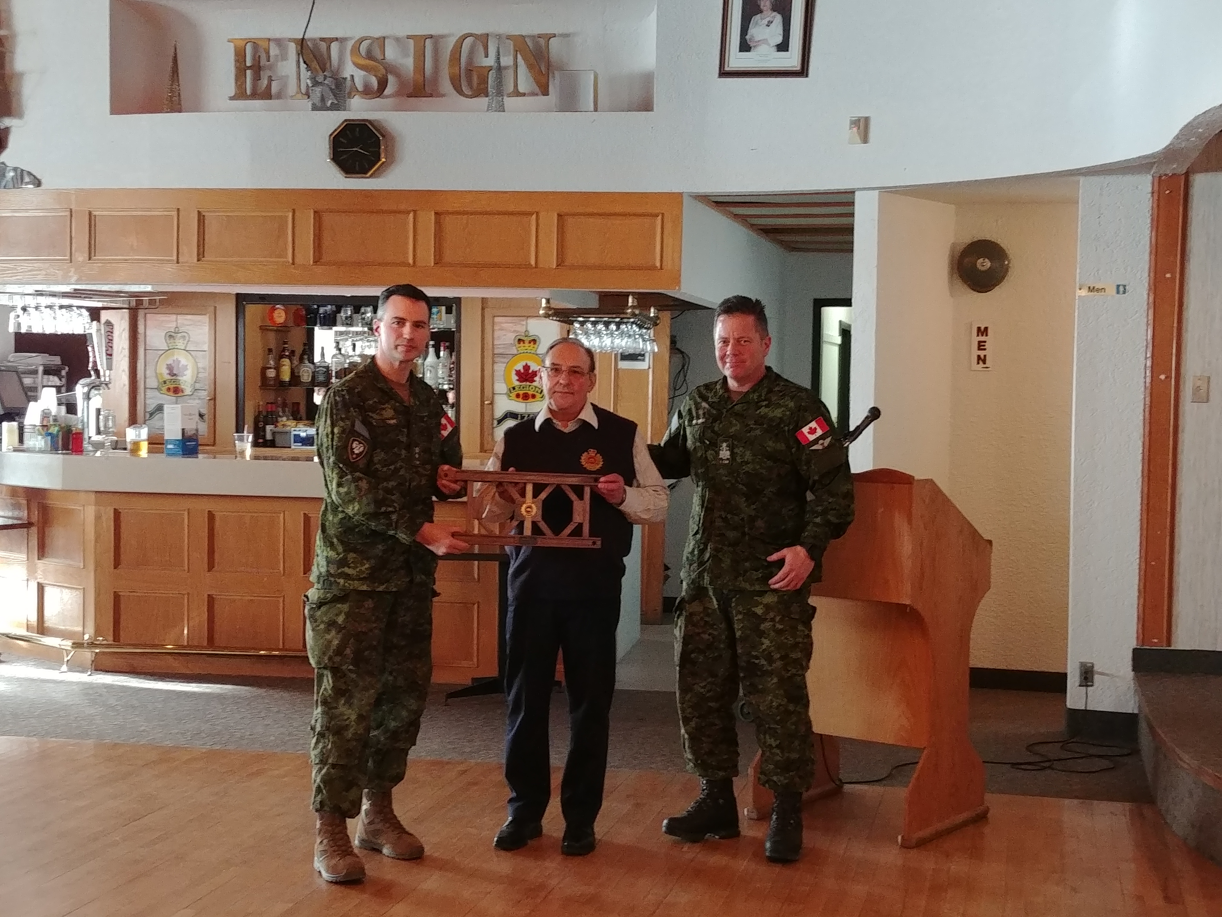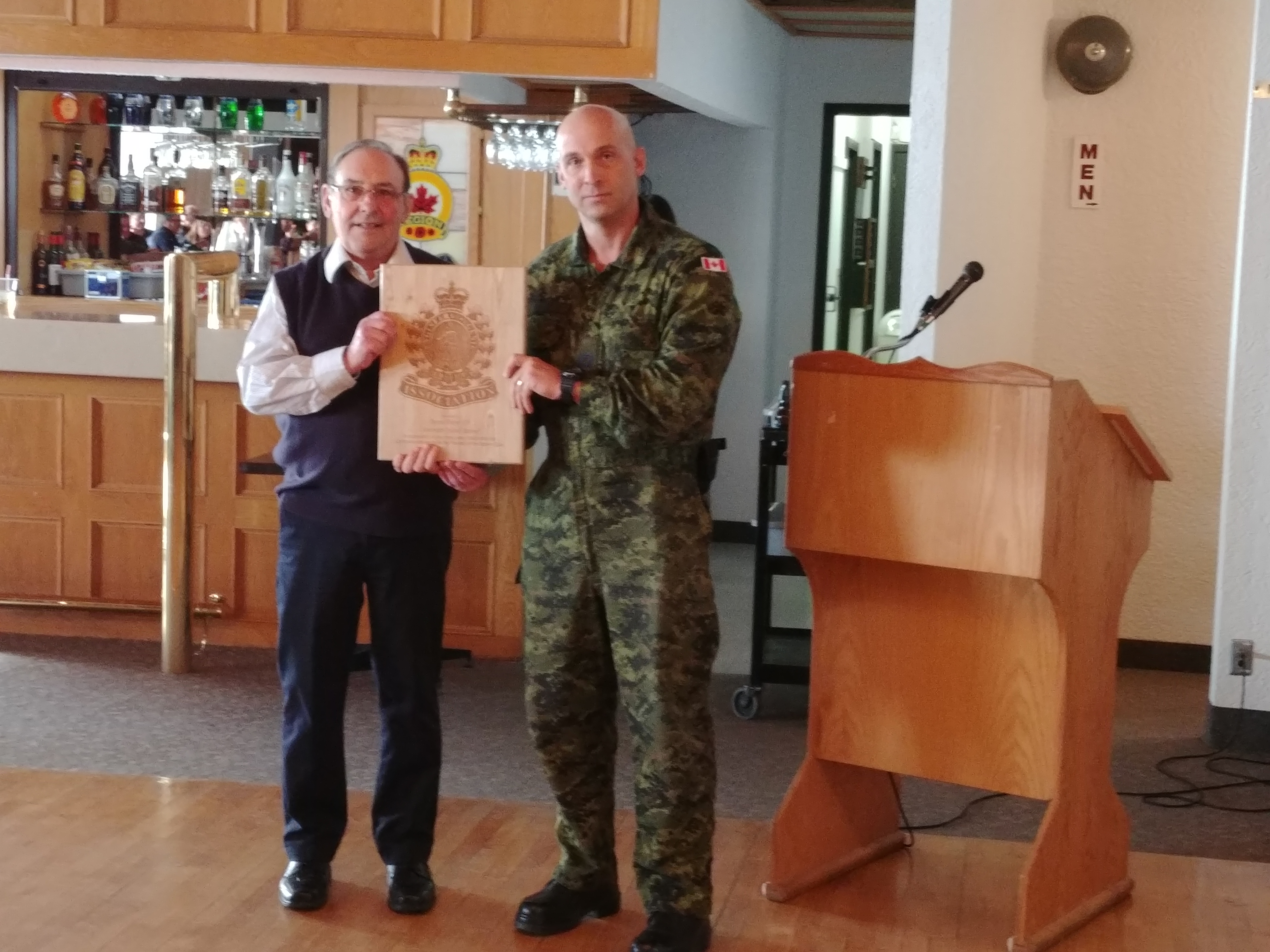 In recognition of his many years of dedicated service to the Club, as well as to the greater Engineer family, several presentations were made. 1 Combat Engineer Regiment presented Dennis with a miniature Bailey Bridge panel and a CO's Coin. The Edmonton chapter of the CMEA presented a laser engraved plaque and a framed letter of appreciation signed by the Executive committee.