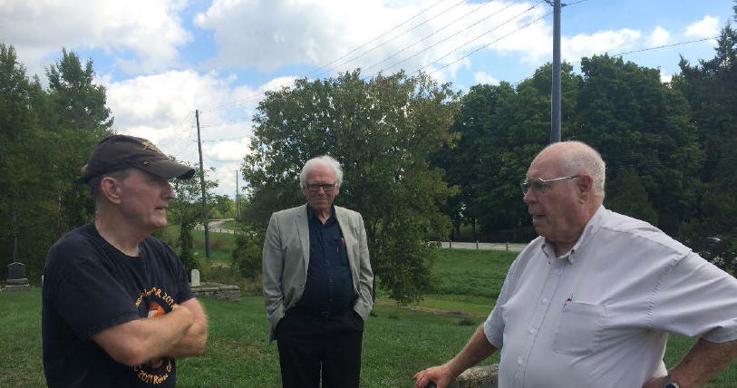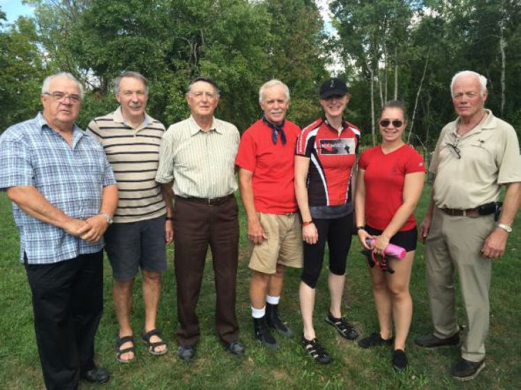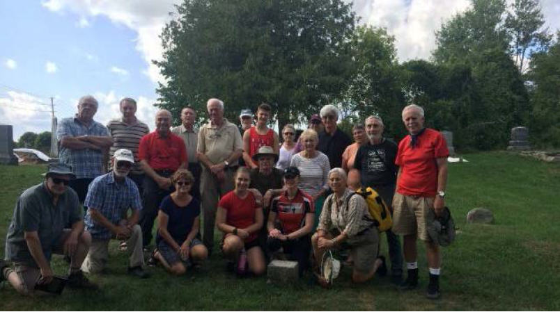 Following a short walk down the trail, we arrived at the site of the cemetery where the six fallen Sappers are acknowledged to have been buried. At the cemetery, there were several members from the committee as well as former military engineers. We also had the opportunity to meet the Mayor of Rideau Lakes Township, Ron Holman and local historian Neil Patterson. Mr. Patterson has done extensive research concerning several burial grounds throughout Rideau Lakes and proved to be a wealth of knowledge during our visit. We also learned that the committee is working on identifying additional grave sites as well as locations of the various buildings that comprised the garrison occupied by 7th Company and its workers.