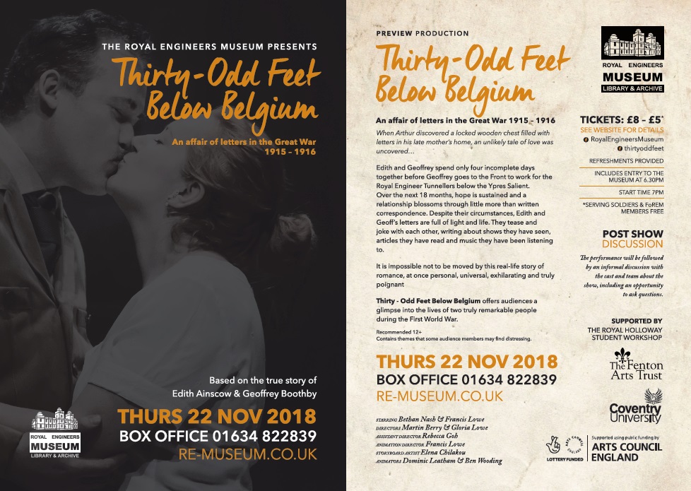 On Thursday 22 November the Museum will be hosting a preview production of the play Thirty-Odd Feet Below Belgium, An affair of letters in the Great War 1915 – 1916