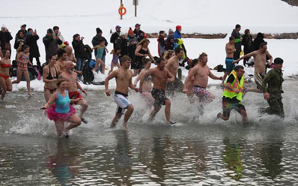 44 Field Squadron, based in Trail, BC supported the 31st Annual Gyros Polar Bear Swim yesterday. In preparation for the event, they build pathways to the river. On the day of the event, they helped sign-up participants and built a large fire the warm them after their plunge into the 40C water. Seventy-seven participants, including many from the Squadron, braved the Columbia's icy waters.