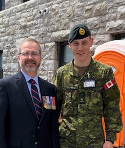 OCdt Steeves has since been promoted to 2 Lieutenant and selected to act as course officer leading a reserve combat engineer troop completing trades training (P Res DP 1 Cbt Engr Courses) at CFSME in Gagetown. In September, he will complete his Engineer officer training (Basic Engineer Officer Course 1.2) before being posted to a unit.