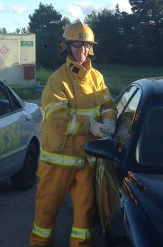 The Col Cmdt, CME Branch Advisor and I attended the Change of Command of the Canadian Forces Fire Chemical Biological Radiological Nuclear Academy (CFFA). We arrived in the afternoon and after supper we went to the training area and observed QL3 night training. We were immediately put through our paces breaking windows and cutting up cars. After that we used the fire trucks and water cannons and watched the QL3s fight a fire in a jetliner mock up and perform casualty evacuation.