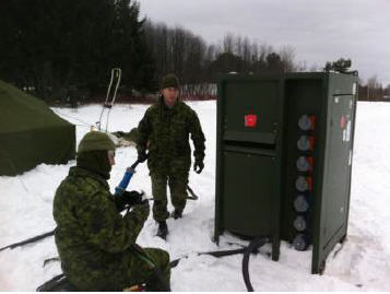 Prior to deployment, many preparations had to be made to ensure success in building the camp. First, we did site reconnaissances. Then, we computer-designed the camp using satellite images of the chosen site. Based on the site’s characteristics and measurements, electricians and electrical generating system techs prepared electrical equipment (electrical panels, wiring, connectors, and so on), so that the camp’s power supply could be quickly installed upon deployment. The use of showers and toilets (MECCs for ablutions) required thorough preparation by plumbers. Fairly complex plumbing is involved in installing four MECCs for ablutions. There is no time to waste in installing them, especially in cold weather.