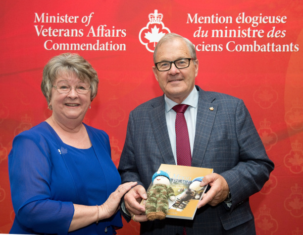 On 24 June 2019 Mrs Shirley O’Connell, the “Izzy Doll Mama” was presented the Minister of Veterans Affairs Commendation by Minister Lawrence MacAulay. This commendation is awarded annually to deserving recipients who have performed commendable service to the Veteran community or individuals who represent commendable role models for their fellow Veterans.