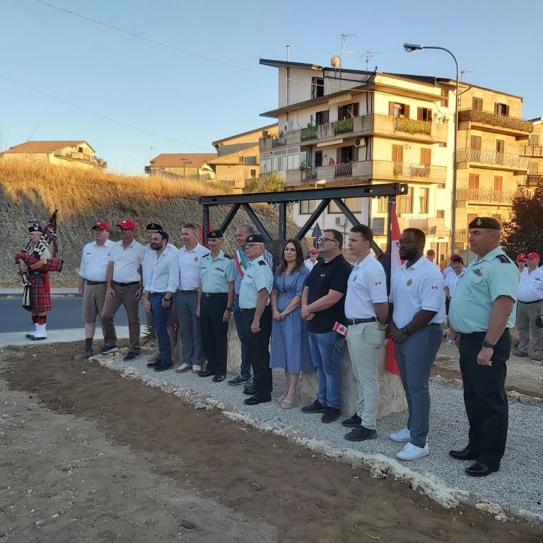 This monument and ceremony could not have taken place without the support of several key personal and agencies. I would therefore like to thank the Mayor of Leonforte, Piero Li Volsi, and his team, for the site, the base and the installation of the monument as well as the ability to hold this ceremony. Steve Gregory and his Op Husky 2023 team for the financial support and overall coordination of this project, especially Doctor Angelo Plumari that supervised the efforts here in Leonforte. The Canadian Military Engineer Branch at large as well as the Canadian Military Engineer Association for their financial and overall support in the making of this monument.
