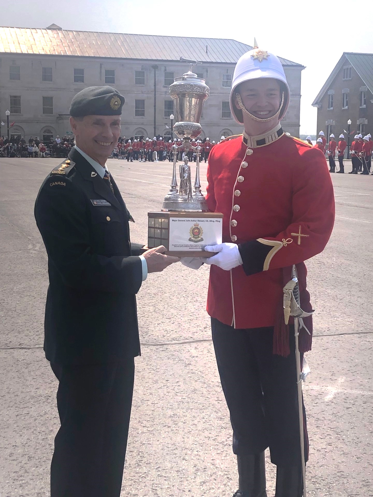 On 19 May 2023, the Colonel Commandant presented the Major General John Arthur Stewart Trophy  to  29252 OCdt James Lynes of Nanaimo, BC. OCdt James is a Construction Engineer. His field of Study was Civil Engineering.