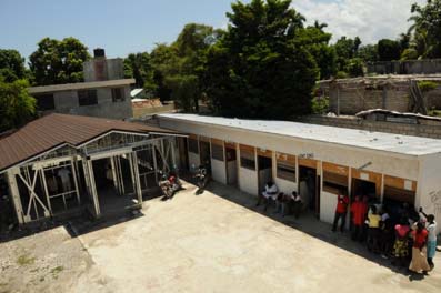 Other projects were focused on reopening lines of communication, such as the mountain road between Jacmel and Leogane (Route 204, closed by landslides in 12 areas), removing debris clogging the streets, demolishing unsafe structures, identifying and freeing human remains trapped in rubble (to be handled by local “mortuary” services3), removing rubble from lands to be used for emergency structures (relief warehouses, clinics, UN compounds, etc.), providing water for distribution by NGOs, supporting local emergency structures (such as the local town hall, schools), building transitional structures such as medical clinics and assisting humanitarian actors in their own tasks, including digging and building latrines, preparing pre-fabricated shelters and preparing sites for displaced persons.