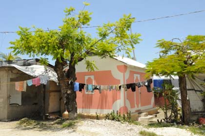 Most Haitian carpenters trained at Camp CHIMO still work for NGOs at building shelters such as this one (of 4,000) Canadian Red Cross shelters already erected (the beneficiaries choose their own color.) For the sceptics at the time: It seems that you can indeed use an engineer variant of the M113 to build foundation posts. Not an inch of vertical movement over 18 months despite floods and a hurricane.