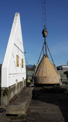 When we approached Eagle West (Abbotsford), their estimate was $8,250.00 – Ooops! But, they realized the purpose and importance of this initiative and donated the excess – many, many thanks. Their 280 ton capacity crane easily handled the 33,000 lb 50 year monument and the 23,000 lb Bell Tent. All that equipment was $700 per hour. Thank heavens things went smoothly, and for that we appreciate the hard work of CWO (Ret’d) Mike Boughner – very well done.