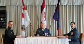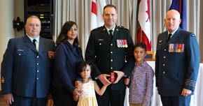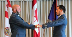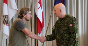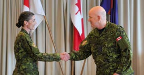 The Change of Command ceremony was presided over by Real Property Operations Group Commander, Colonel (Col) Donald Henley, accompanied by Formation Chief Warrant Officer (CWO) Albert Levesque. It began with several presentations, beginning with Lieutenant Walter Shyman being presented with his Commissioning Scroll moments before being surprised by a promotion to Captain. Next was 1st clasp (bar) for the Canadian Decoration to LCol Burbridge, signifying 22 years of military service.