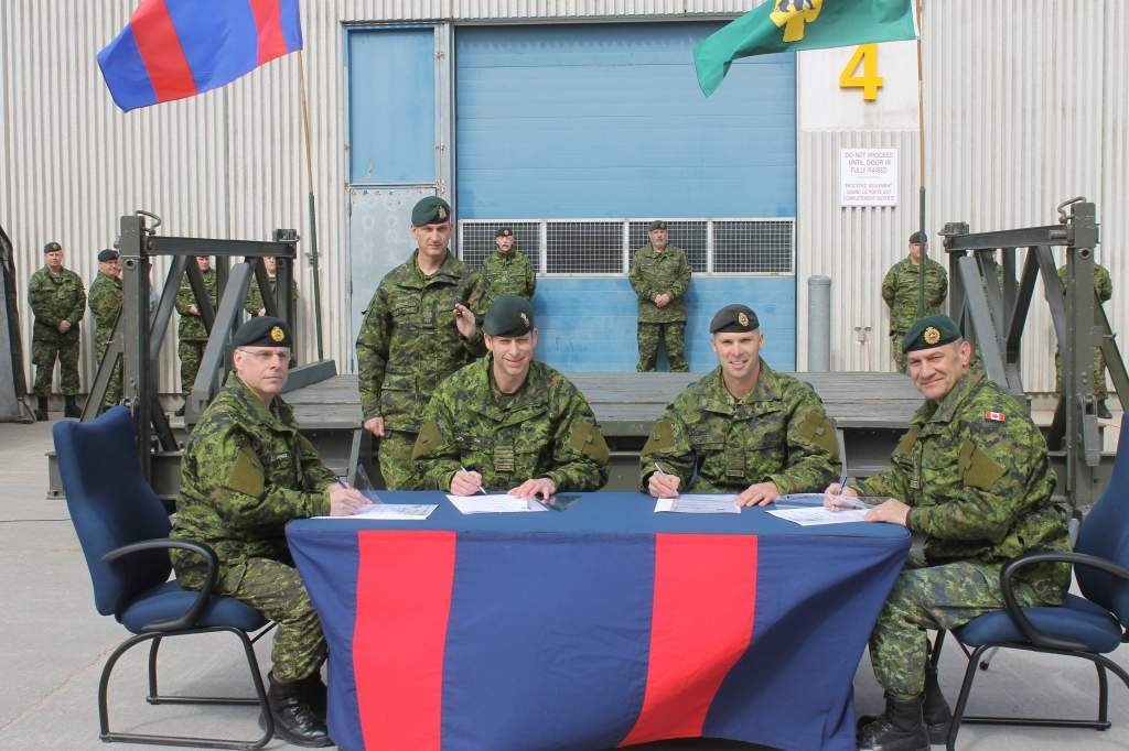 May 6th, 2014 highlighted the change of appointment between the 18th and 19th RSM of 2 Combat Engineer Regiment from CWO Nicolas Manoukarakis to CWO Darrel Jones. CWO Manoukarakis is serving his 31st year as a Combat Engineer in the CAF with 7 tours and 4 postings. He is married to Michele who retired as an RMS MWO after 30 years of dedicated service; together they have 2 children Christopher and Sean. His experience, solid mentorship, and honest and direct approach will be missed by all members of 2 CER, especially those who returned from TF 1-10 under his leadership as the SSM. The duties of RSM have now been assumed by CWO Jones who is no stranger to the unit having served at every enlisted rank level at 2 CER. With 24 years in the CAF and deployments to Kuwait, Yugoslavia and Afghanistan, there is no doubt that CWO Jones will be able continue in the foot steps of previous RSMs and be an excellent role model for the sappers of 2 CER. He is married to Carolyn and they have 4 children; Blake, Alex, Gary and Erika.