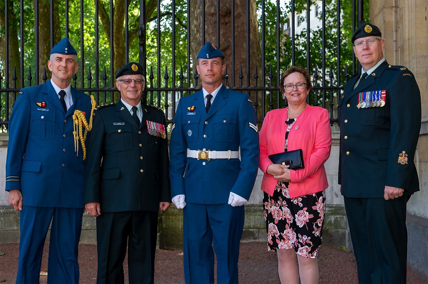 Capt Jacques Landry, CWO Glenn Simpkin, my wife Deanna and I visited Buckingham Palace on 27 June. We were met by a Lady in Waiting and the Queen’s Equerry. CWO Simpkin and I had an audience with Her Majesty of about 30 minutes. We started by presenting her with the book and DVD, Clearing the Way, the story of 23 Field Squadron’s experiences on Op MEDUSA. She asked several questions. We then discussed the growth of the CME Branch, the leadership positions we are now holding, and the missions we are conducting today. We also spoke of the CMEA, the Invictus Games, and the support programs for those who suffer from PTSD. The Queen then invited Capt Landry and my wife into the room.