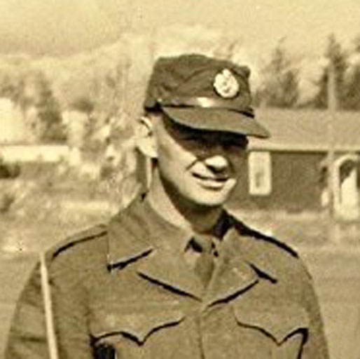 Frank enrolled with 25 Norfolk Medium Regiment Royal Canadian Artillery (RCA) in October 1951 and transferred to the Canadian Army Special Force with the Royal Canadian Engineers in March 1952 for Korean War Service. After his training at the Royal Canadian School of Military Engineering in Camp Chilliwack BC he was posted to 59th Field Squadron in Wainwright AB in May 1952 but was soon selected for service in Germany with 58th Field Squadron. He was subsequently posted to 3 Field Squadron and deployed to Korea in 1954. Returning to Canada, Frank took his release from the Special Force and transferred to 69 Battery of 56 Field Regiment RCA in 1955.   He subsequently transferred to A Company of the 3rd Battalion Royal Canadian Regiment in Woodstock ON in 1968 and became Company Sergeant Major. Then, in 1970 Frank returned to 56 Field Regiment RCA and became Battery Sergeant Major.