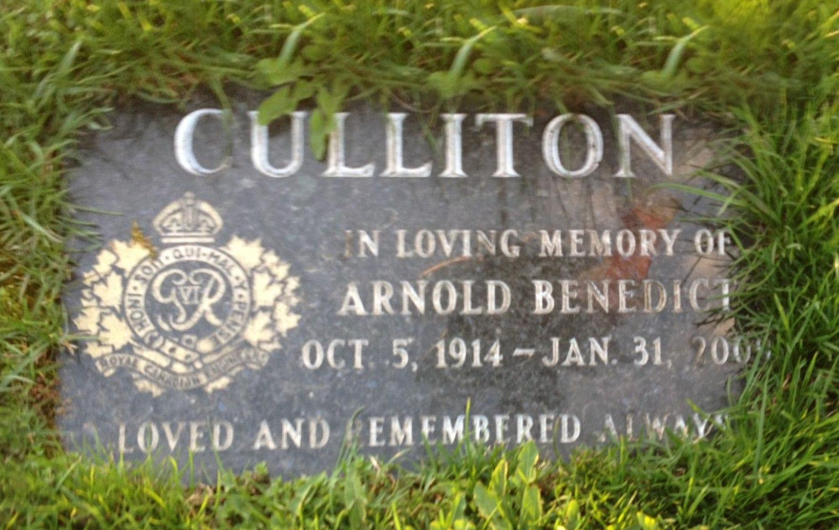We regret to advise of the death of Sergeant Arnold Benedict Culliton (Ret’d) on 31 January 2009 at the St, Catharines General Hospital in St. Catharines ON at the age of 95 years.